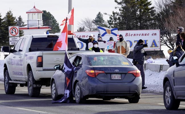 Crowd In Ontario Cheers On Anti Vaccine Mandate Truck Convoy The Seattle Times